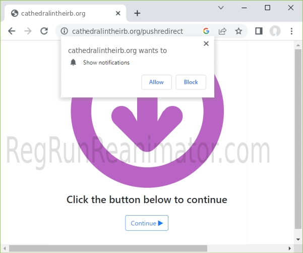CATHEDRALINTHEIRB.ORG is a malicious site that tricks you into subscribing to its notifications to bombard your device with spam later.