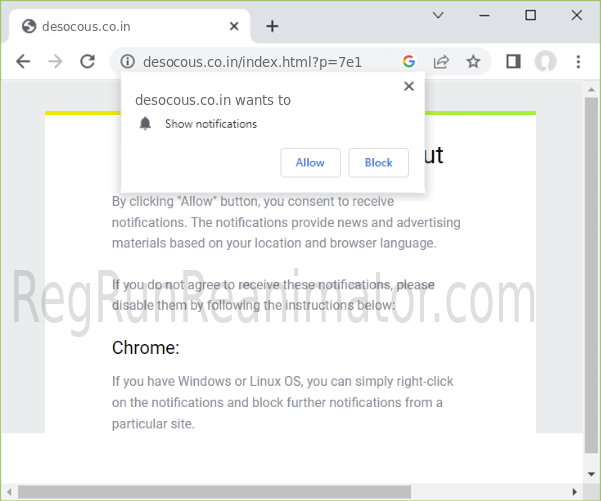 I received a lot of reports from users who experienced annoying pop-up notifications on their computers and mobile devices from a website called "Desocous.co.in".