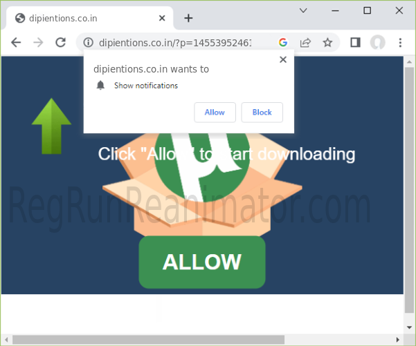 The "Dipientions.co.in" website relies on aggressive tactics to distribute its notification spam, including using misleading tactics to trick users into allowing notifications.