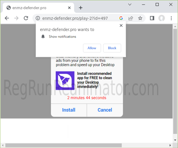 The "Enmz-defender.pro" scam operates by deceiving users into enabling push notifications, allowing the site to bypass browser pop-up blockers and display content directly on the user's desktop.