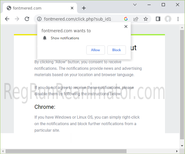 FONTMERED.COM is a malicious site that tricks you into subscribing to its notifications to bombard your device with spam later.