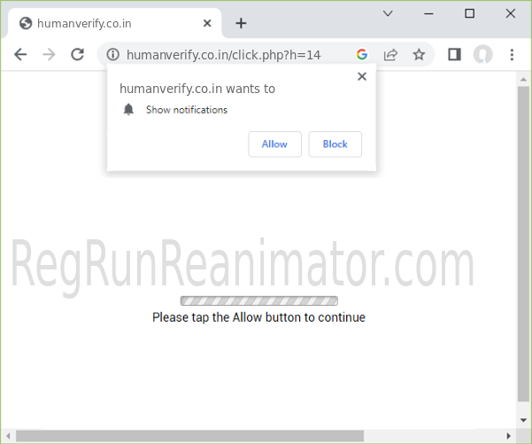 HUMANVERIFY.CO.IN is a malicious site that tricks you into subscribing to its notifications to bombard your device with spam later.