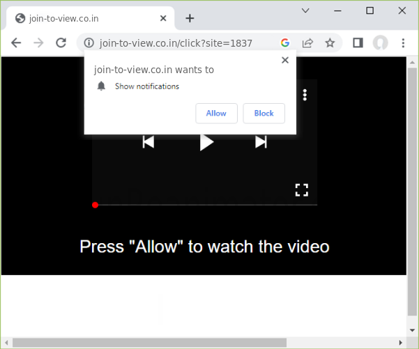 The "Join-to-view.co.in" website relies on aggressive tactics to distribute its notification spam, including using misleading tactics to trick users into allowing notifications.