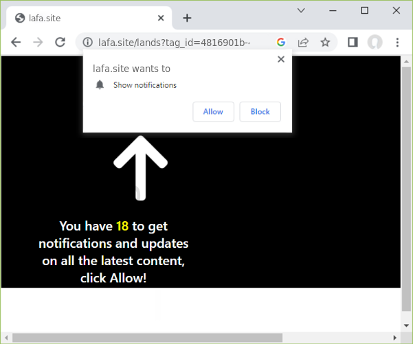 LAFA.SITE is a malicious site that tricks you into subscribing to its notifications to bombard your device with spam later.