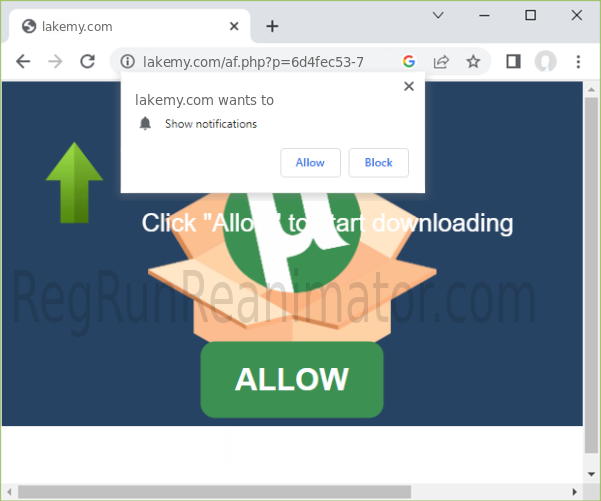 The "Lakemy.com" website relies on aggressive tactics to distribute its notification spam, including using misleading tactics to trick users into allowing notifications.