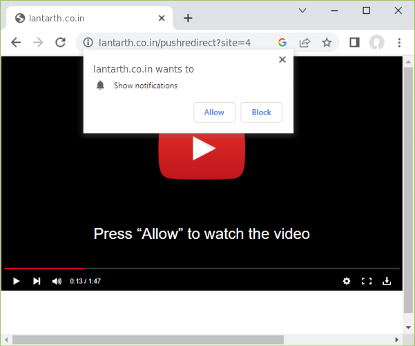 At first glance, the "Lantarth.co.in" may seem harmless, displaying a video player and prompting users to enable notifications to watch a video.