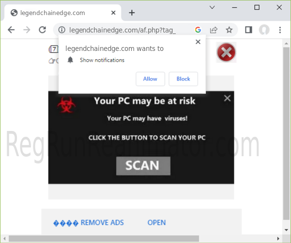 LEGENDCHAINEDGE.COM is a malicious site that tricks you into subscribing to its notifications to bombard your device with spam later.