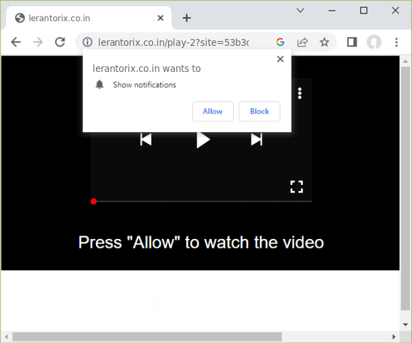 At first glance, the "Lerantorix.co.in" may seem harmless, displaying a video player and prompting users to enable notifications to watch a video.