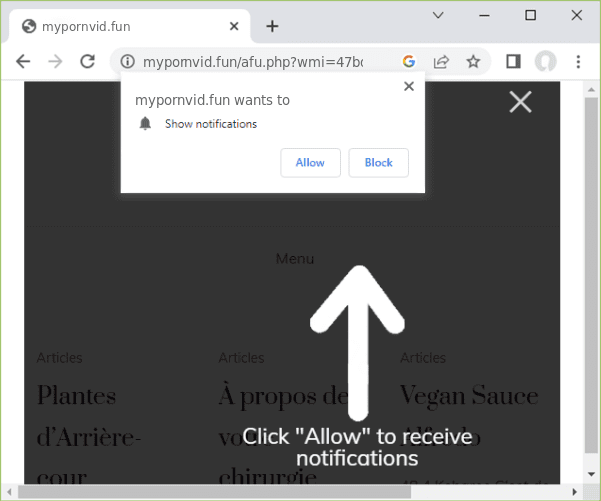 The "Mypornvid.fun" website relies on aggressive tactics to distribute its notification spam, including using misleading tactics to trick users into allowing notifications.
