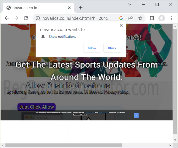 NOVARICA.CO.IN is a malicious site that tricks you into subscribing to its notifications to bombard your device with spam later.