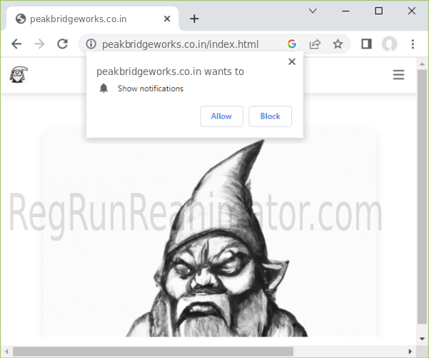 The "Peakbridgeworks.co.in" website relies on aggressive tactics to distribute its notification spam, including using misleading tactics to trick users into allowing notifications.