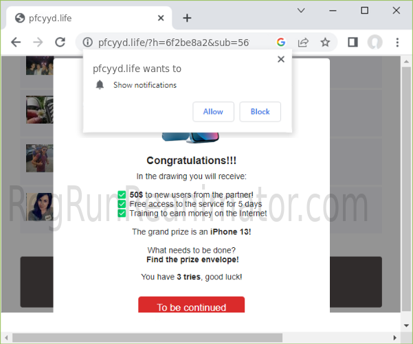 The "Pfcyyd.life" website relies on aggressive tactics to distribute its notification spam, including using misleading tactics to trick users into allowing notifications.