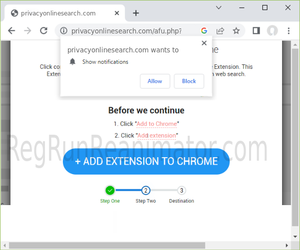 The "Privacyonlinesearch.com" website relies on aggressive tactics to distribute its notification spam, including using misleading tactics to trick users into allowing notifications.