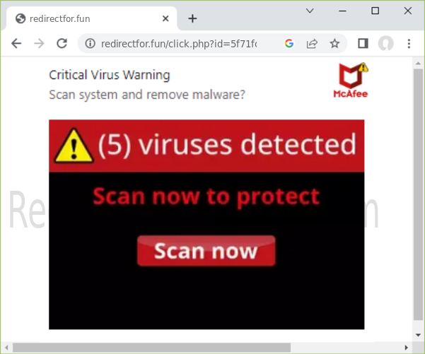 REDIRECTFOR.FUN infects web browsers.