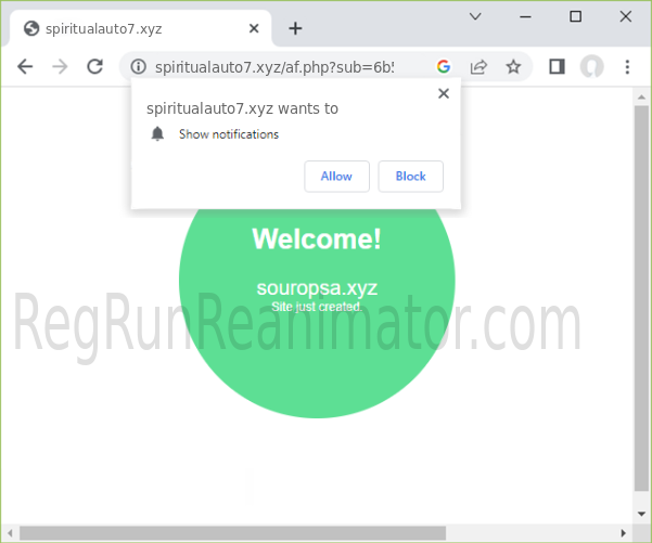 SPIRITUALAUTO7.XYZ is a malicious site that tricks you into subscribing to its notifications to bombard your device with spam later.
