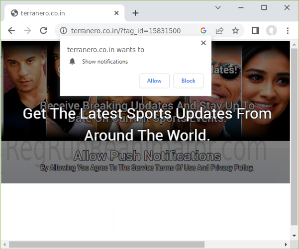 TERRANERO.CO.IN is a malicious site that tricks you into subscribing to its notifications to bombard your device with spam later.