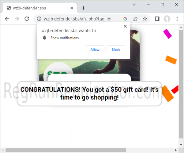 The "Wzjb-defender.sbs" website relies on aggressive tactics to distribute its notification spam, including using misleading tactics to trick users into allowing notifications.