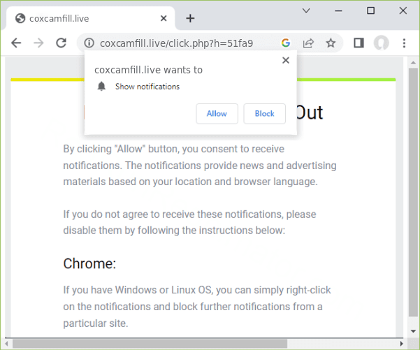 Remove COXCAMFILL.LIVE virus (Removal Guide)