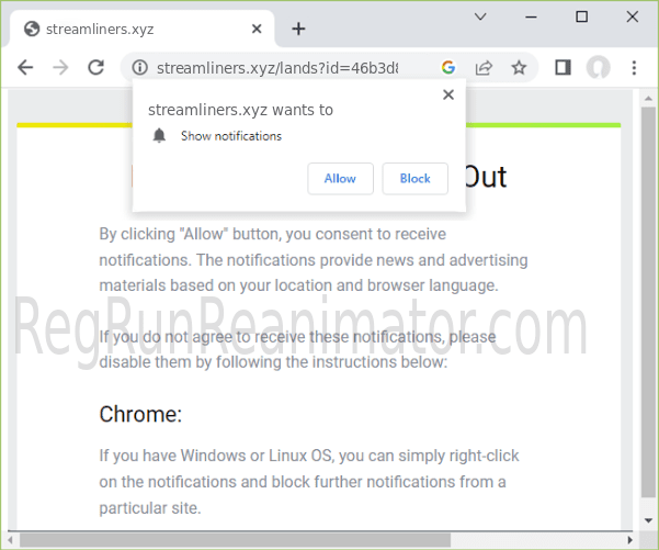 Remove STREAMLINERS.XYZ virus (Removal Guide)